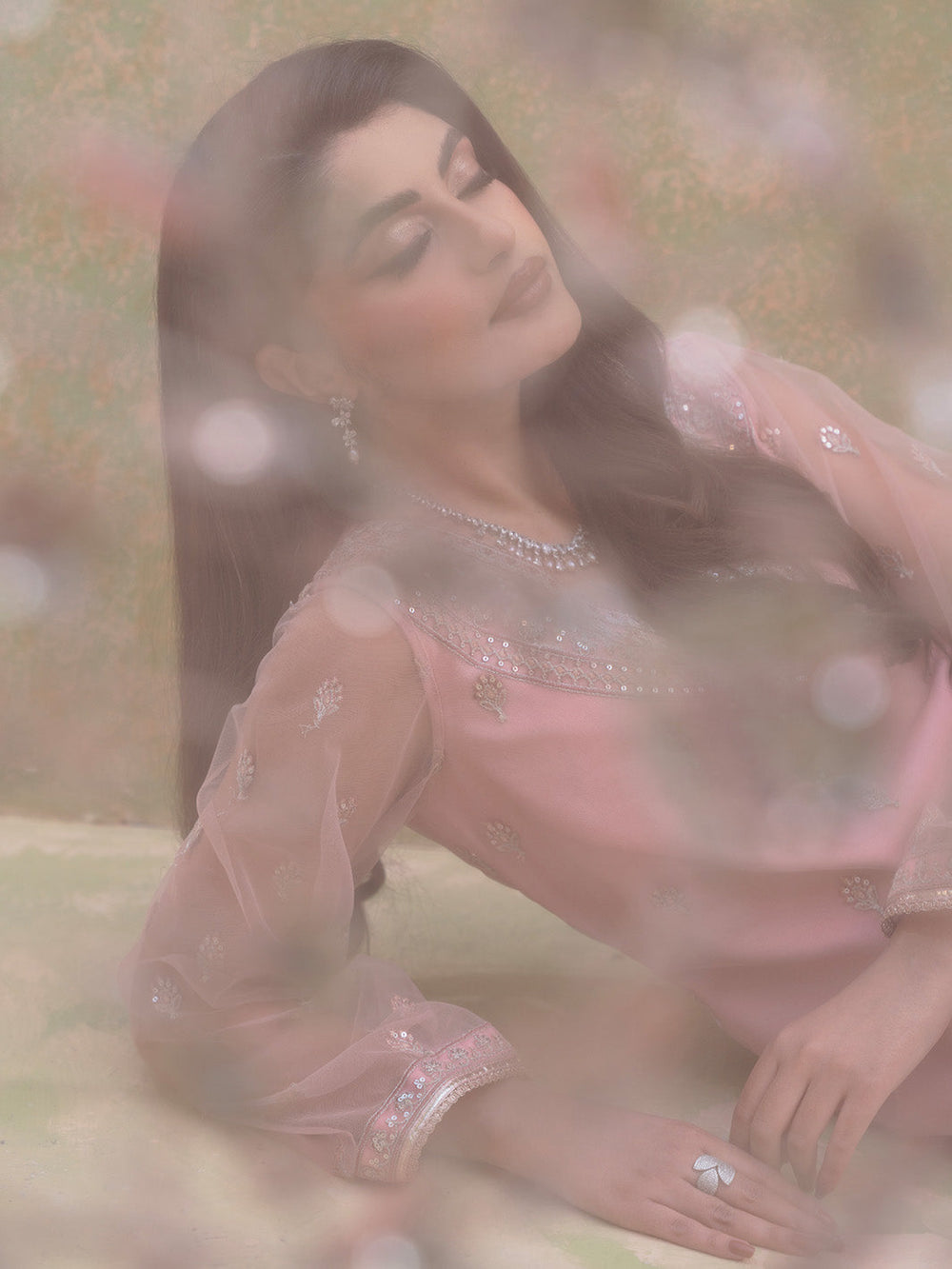 Shirt: Neckline Embroidered with intricate detailing, adorned with a delicate spray of embroidered motifs for a subtle, sophisticated look.